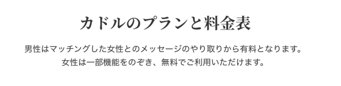 期間限定クーポンや初回登録特典が用意されているマッチングアプリも多い中、カドルはあらかじめ料金体系を明確にし、割引に頼らない運営方針を採っているのが特徴です。