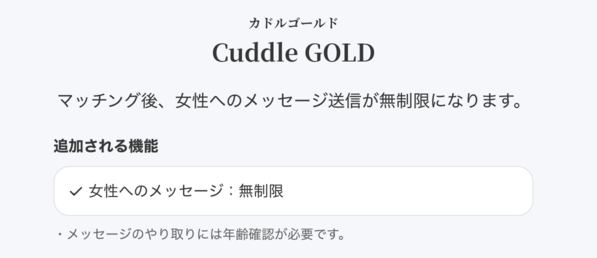 カドルのゴールドプランは、マッチング後に女性へ無制限でメッセージを送れるようになる有料プランです。