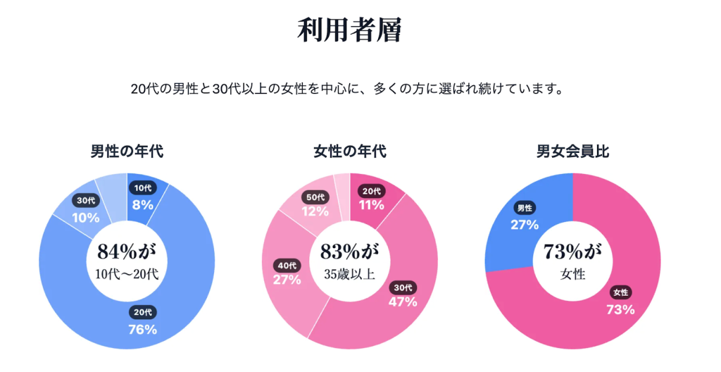 アプリ内では、落ち着いた関係を求める年上女性が多いため、若すぎる年齢層はニーズが限られてしまうことが理由として挙げられます。
