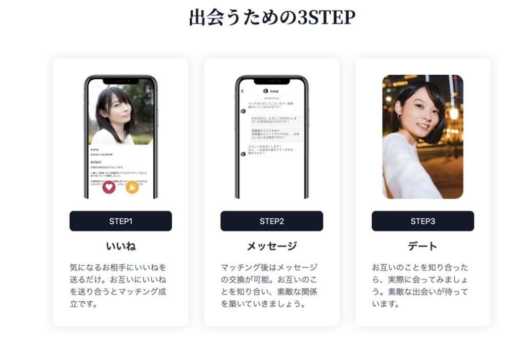 出会いが100%保証されるアプリではないものの、コンセプトが明確なため比較的マッチしやすい特徴があります。